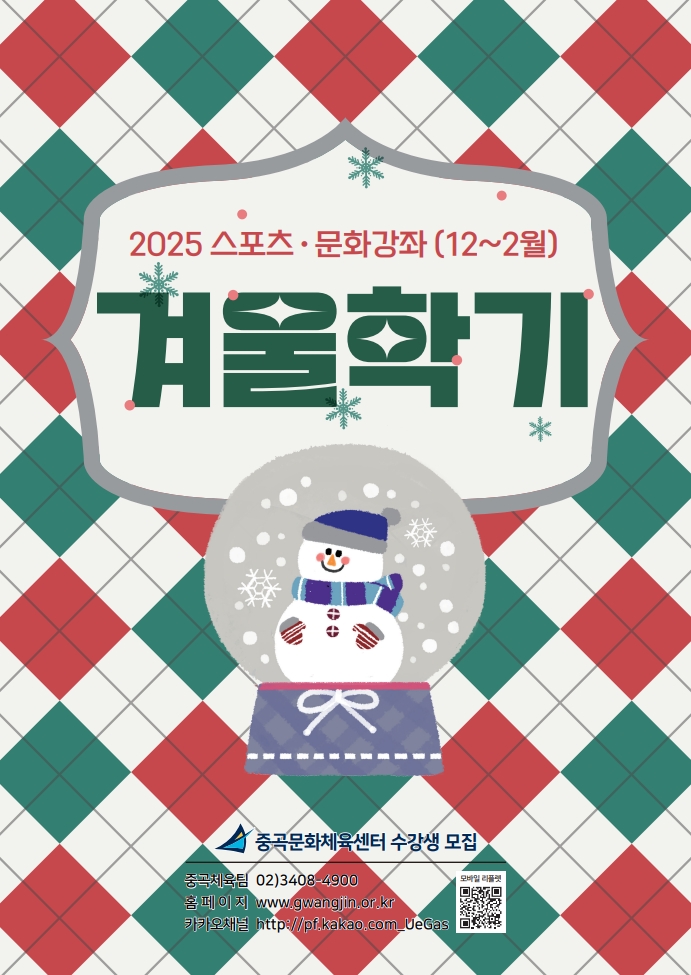 중곡문화체육센터 [중곡문화체육센터] 겨울학기 모바일 리플릿 안내 작성자 최유리 등록일자 2025년 11월 5일 14시 25분 23초 조회 635 겨울학기 모바일 리플릿 안내붙임 참조 2025_1024_중곡문화체육센터_25년 겨울학기 프로그램_최종_1.jpg [ Size : 371.64KB , Down : 793 ] 미리보기 다운로드 목록보기
