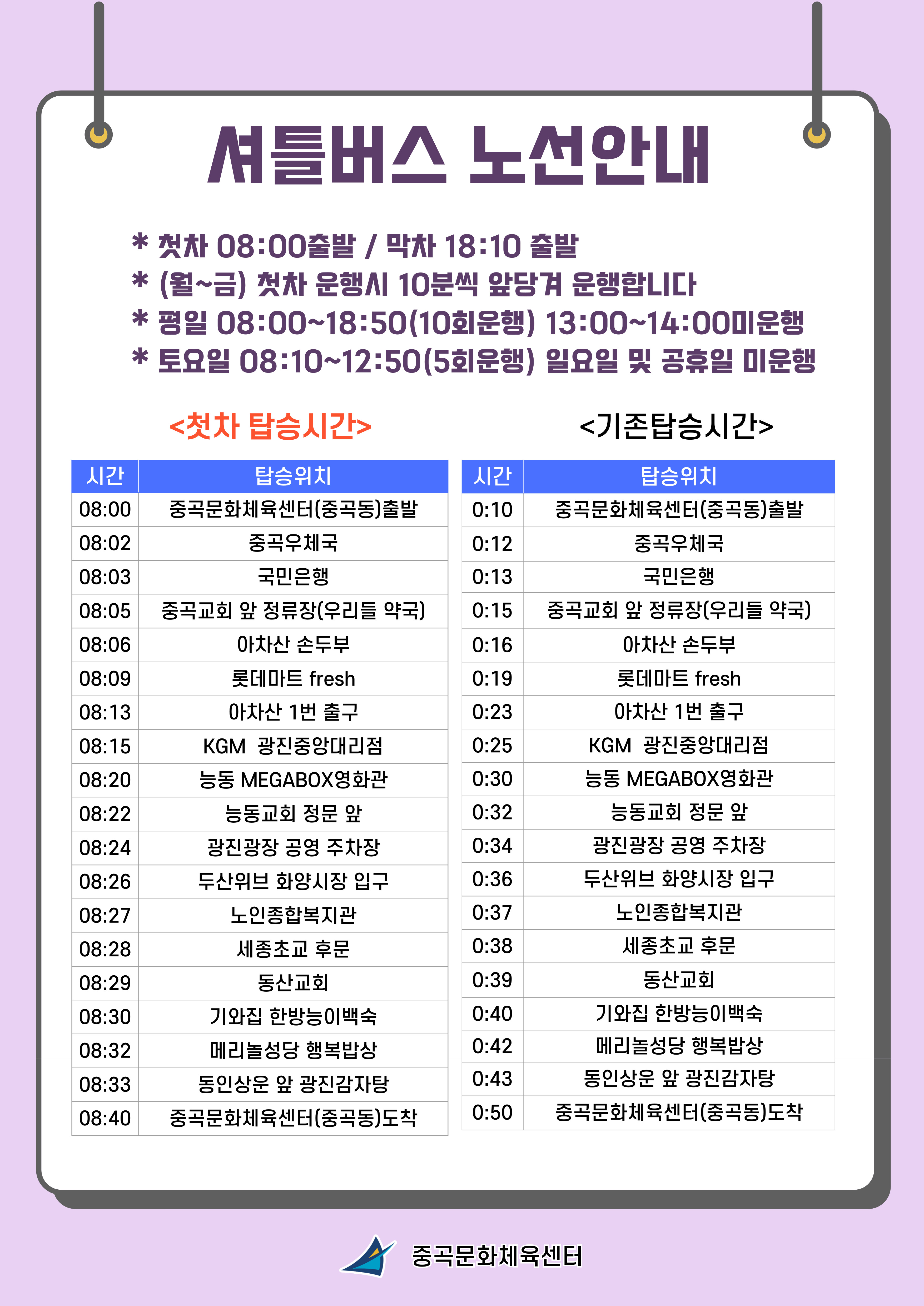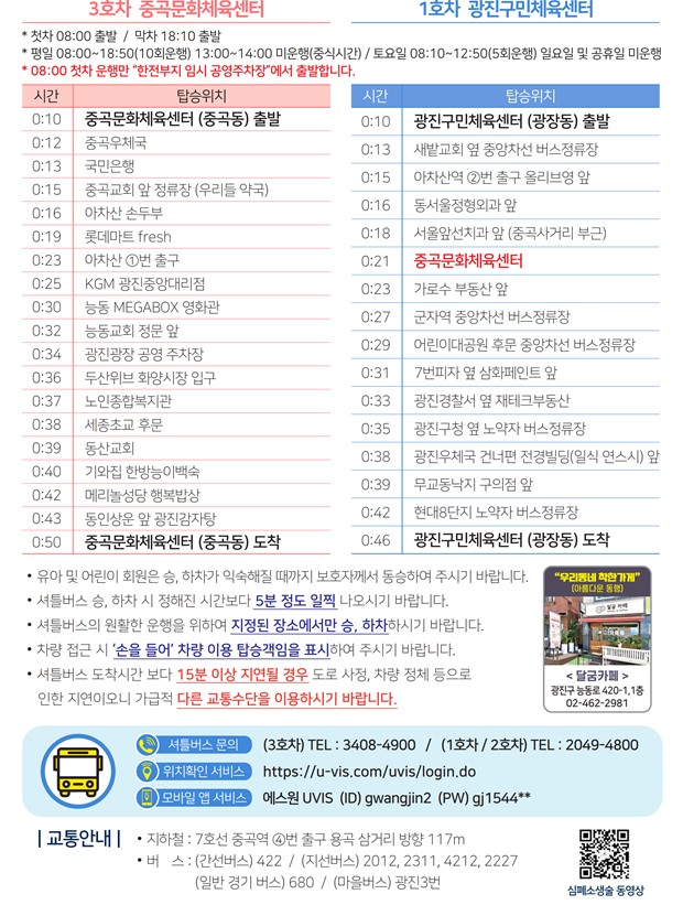 공지 중곡문화체육센터 [중곡문화체육센터] 셔틀버스 노선 안내 (3호차, 1호차)