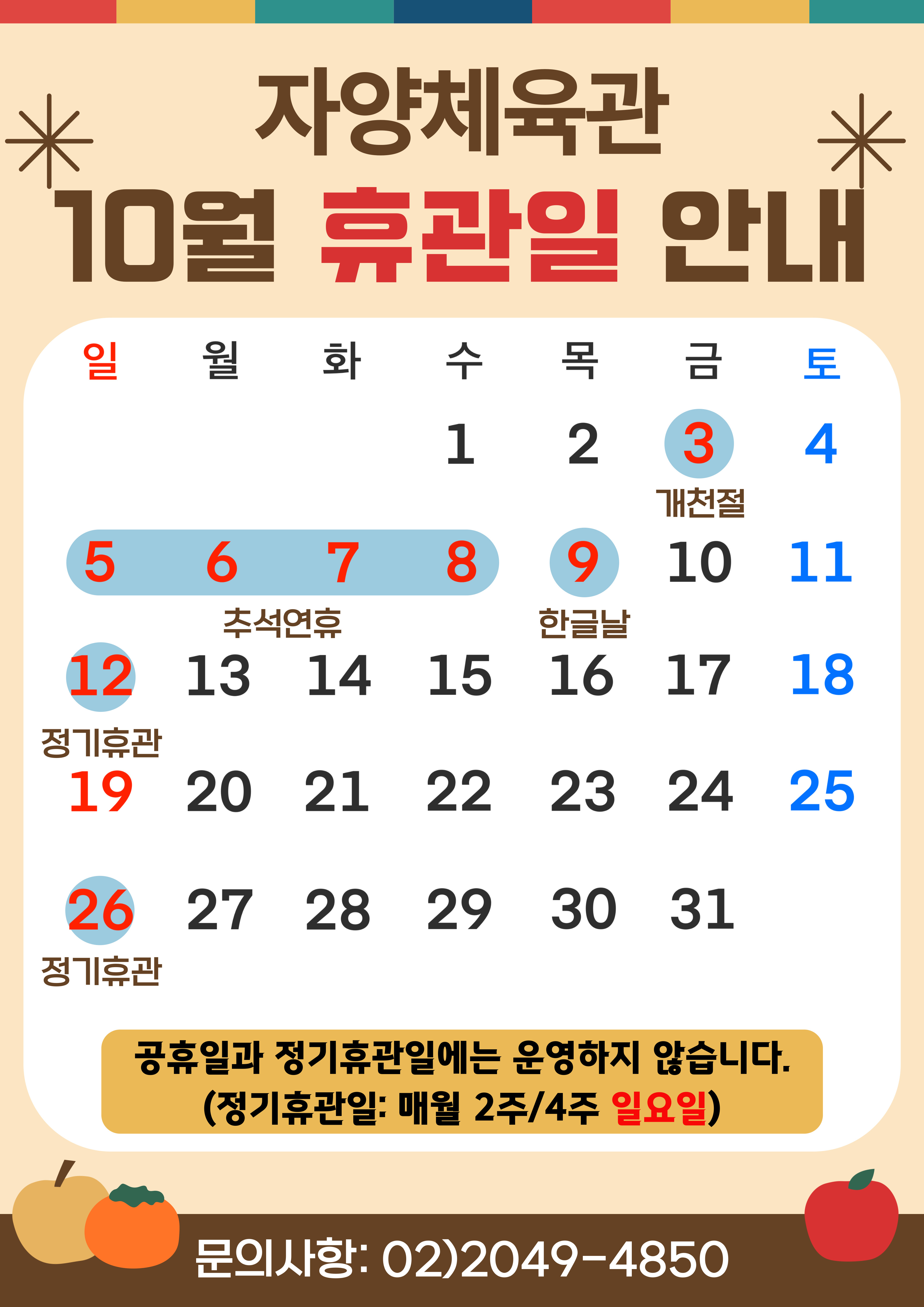 공지 자양체육관 [자양체육관] 10월 휴관일 안내