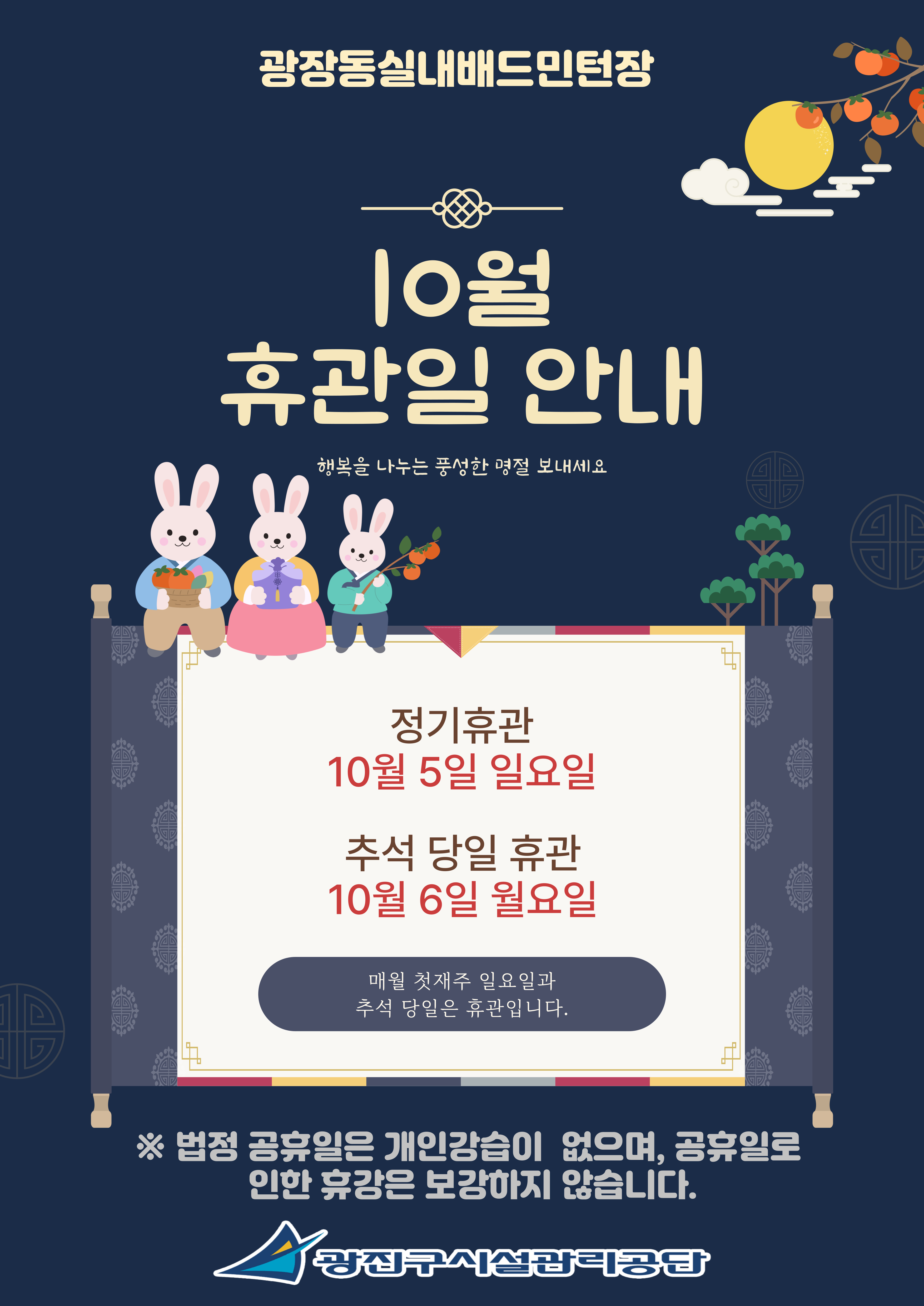 공지 광장동실내배드민턴장 2025년 10월 휴관일 안내