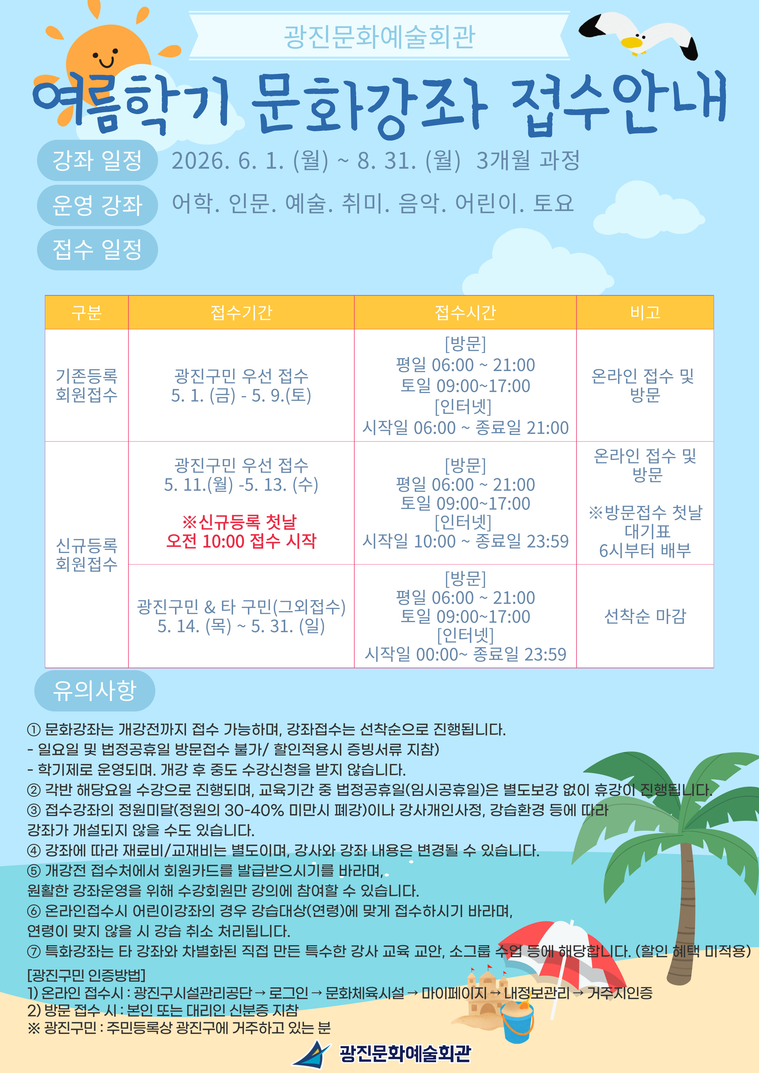 광진문화예술회관 [광진문화예술회관] 여름학기 문화강좌 접수 안내