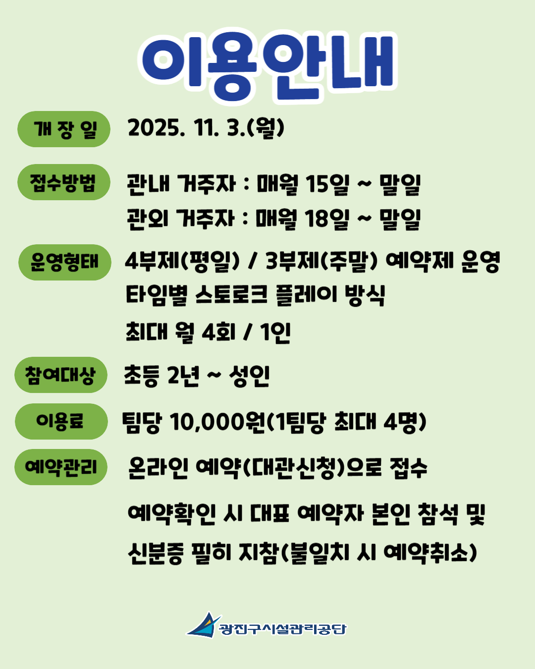 공지 광진구민체육센터 [광진구민체육센터] 신규시설 실내 스크린파크골프 안내