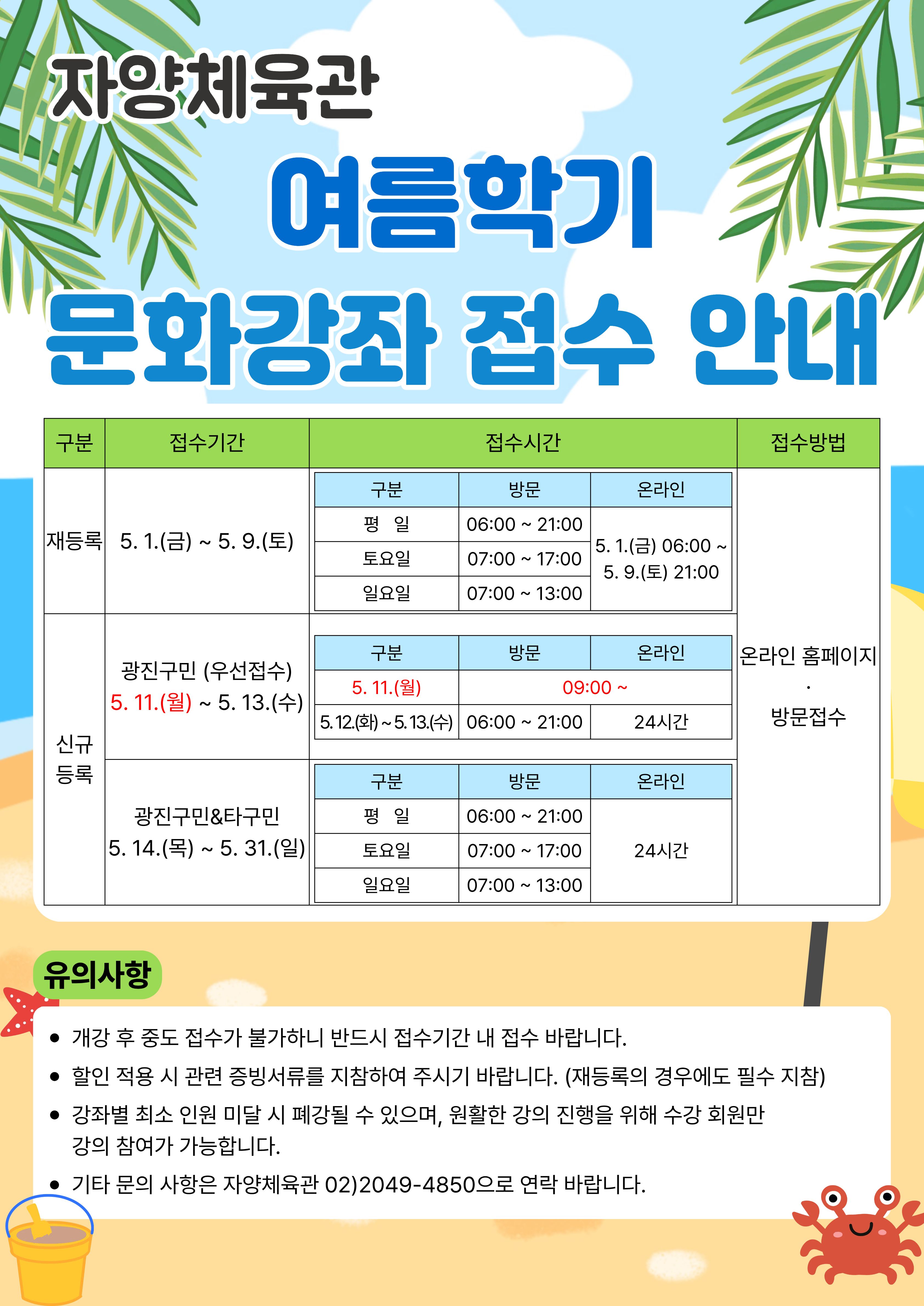 <자양체육관 여름학기 문화강좌 접수 안내>