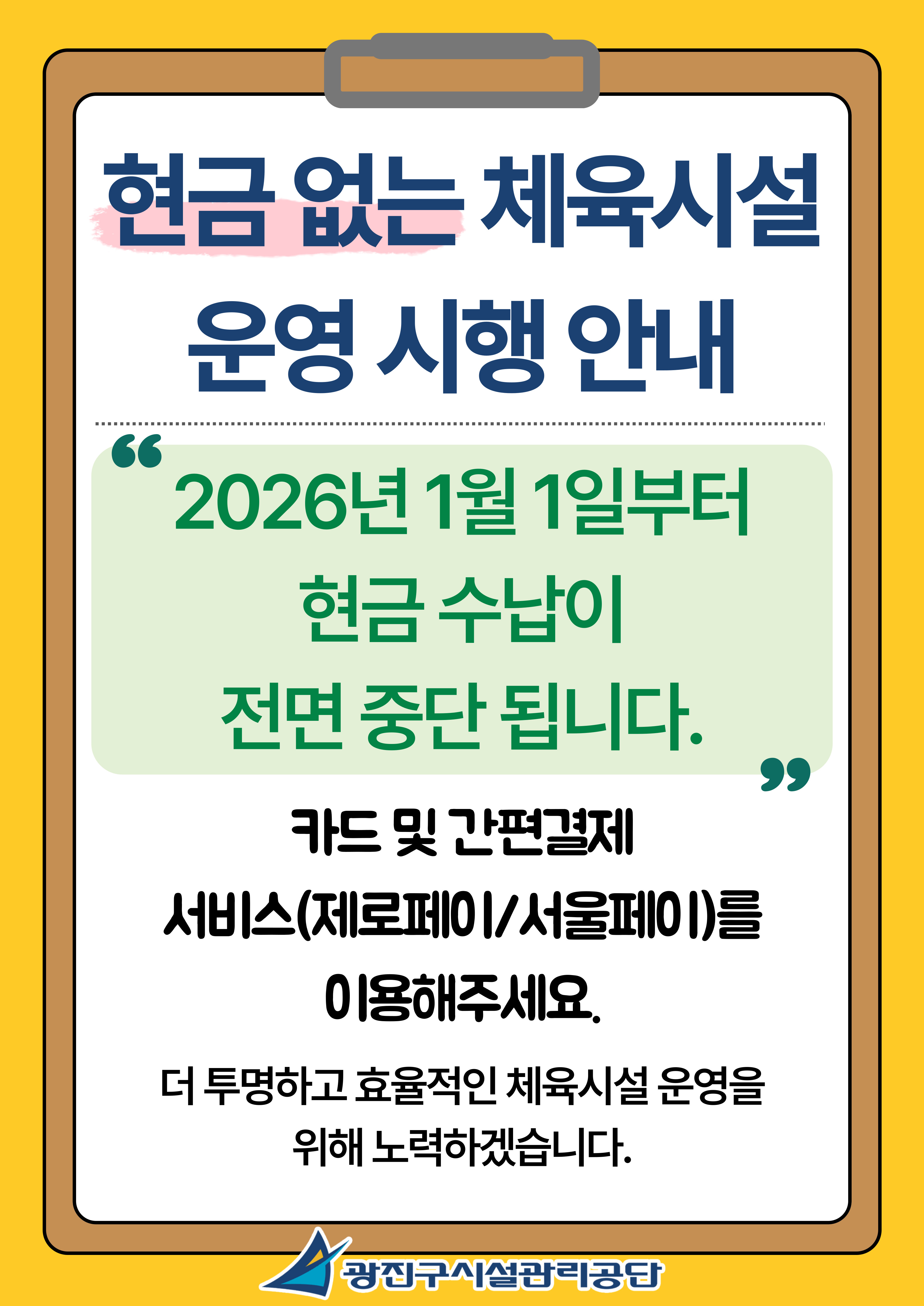 공지 자양체육관 [자양체육관] 2026년 1월부터 현금 없는 체육시설 운영
