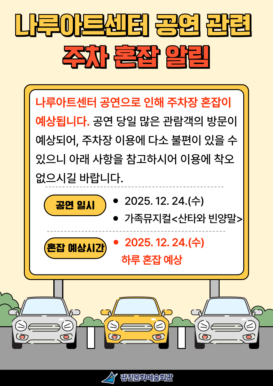 공지 광진문화예술회관 [광진문화예술회관] 나루아트센터 공연 관련 주차장 혼잡 알림
