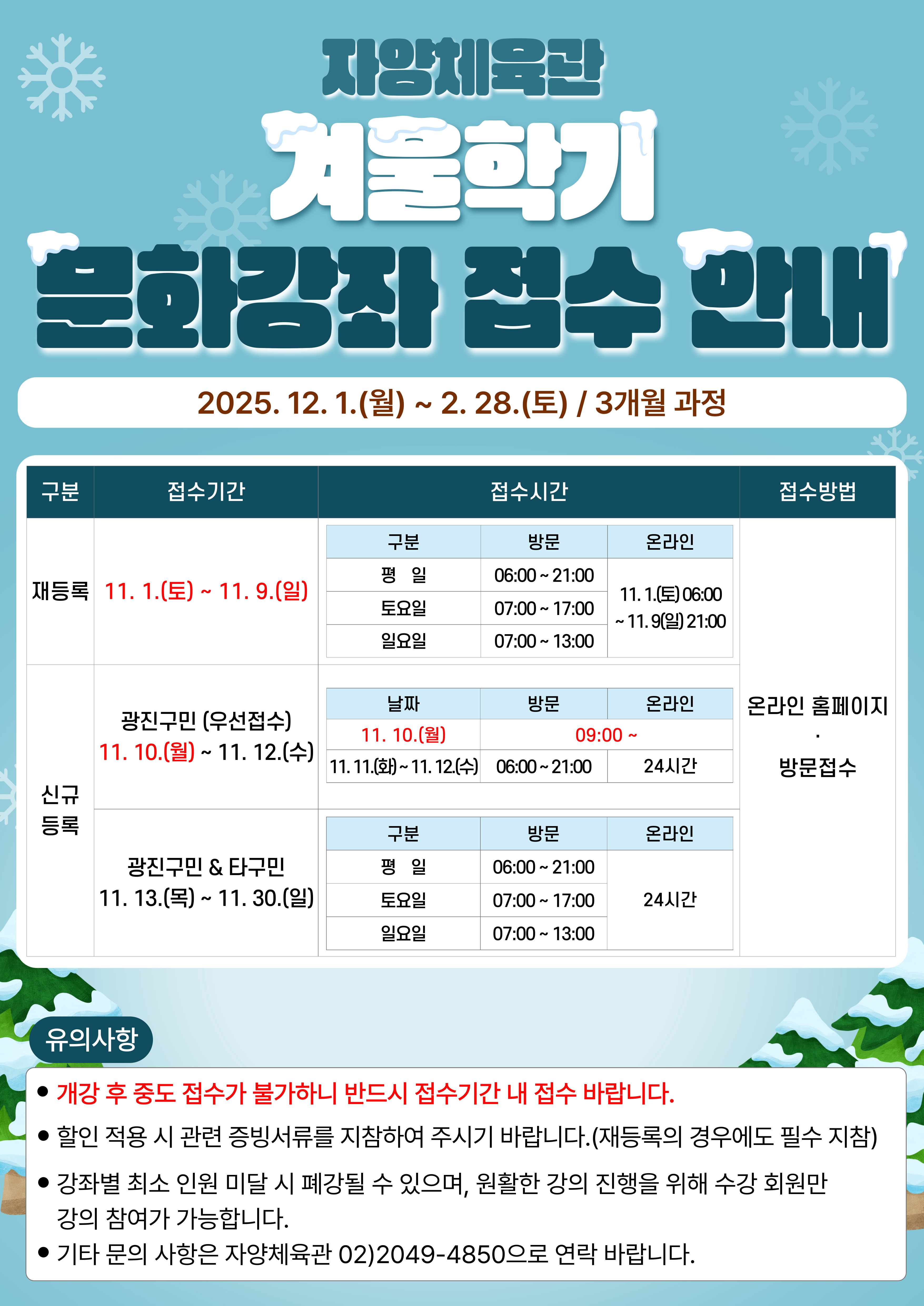공지 자양체육관 [자양체육관] 12월~2월 겨울학기 문화강좌 접수 안내