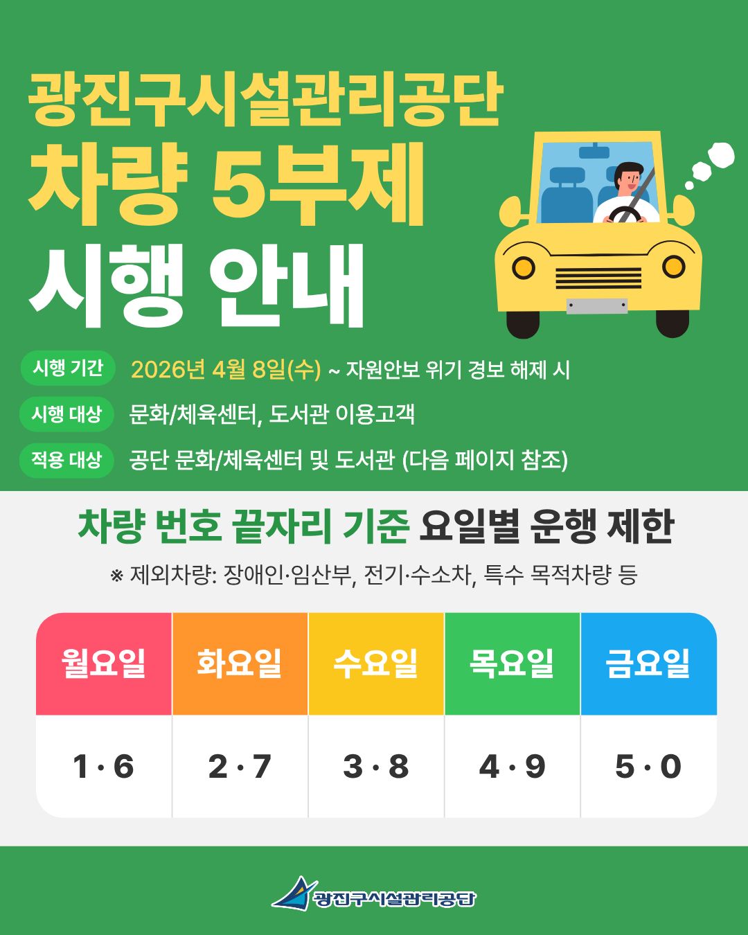 공지 전체알림 자원안보 위기에 따른 차량 5부제 실시 안내