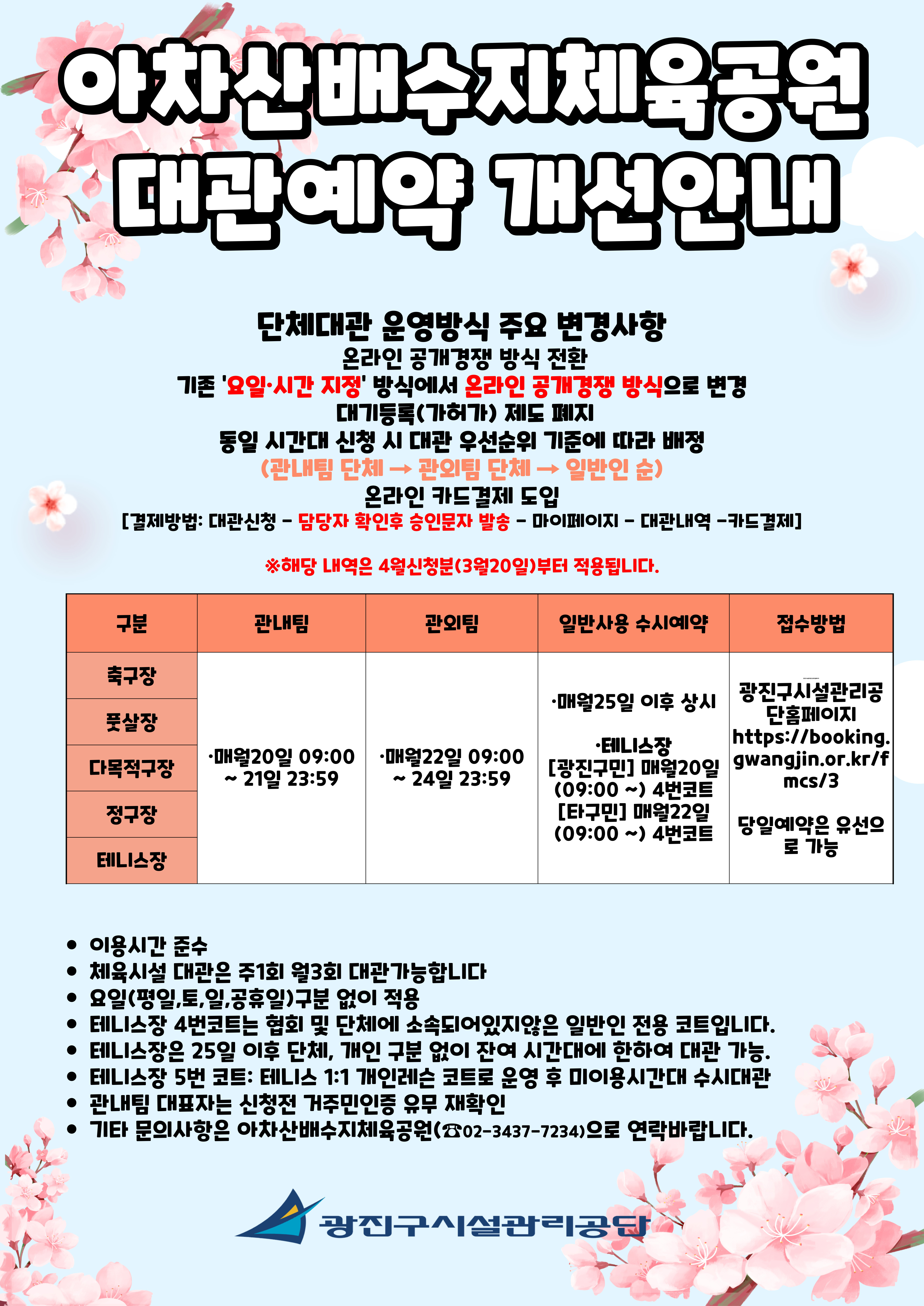 기타 문의사항은 아차산배수지체육공원(☎02-3437-7234)으로 연락바랍니다.