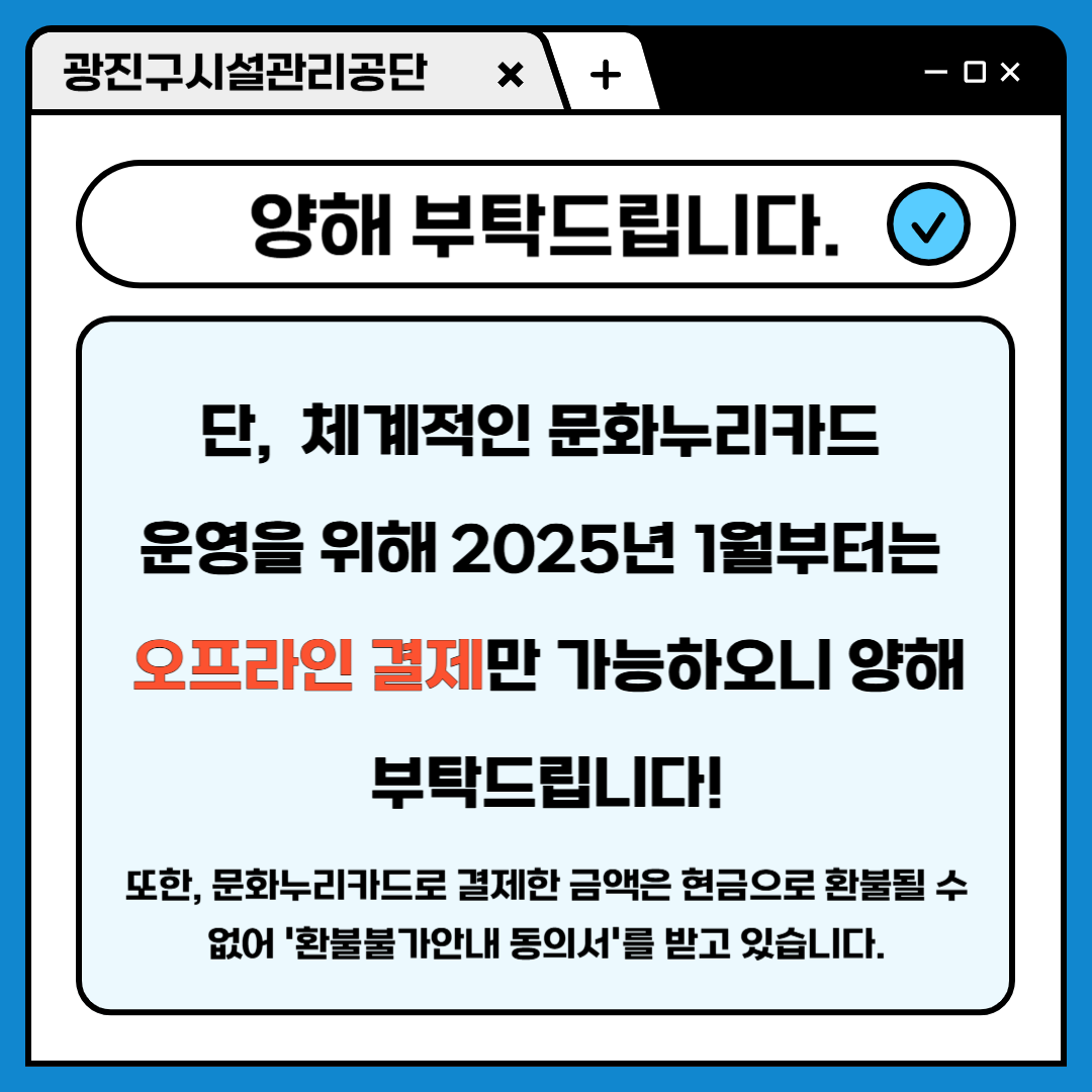 전체알림 광진구시설관리공단 문화누리카드 결제 방식 변경 안내