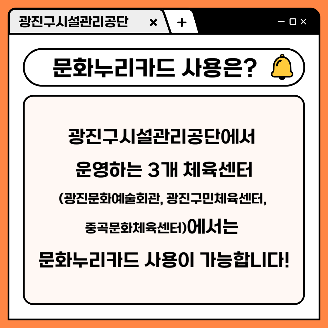 문화누리카드 사용처 : 광진문화예술회관, 광진구민체육센터, 중곡문화체육센터